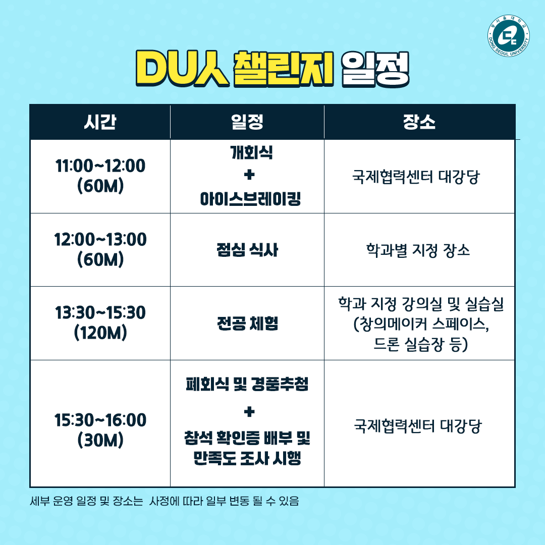 <2025 DU人 챌린지 학과 체험 운영 학과>