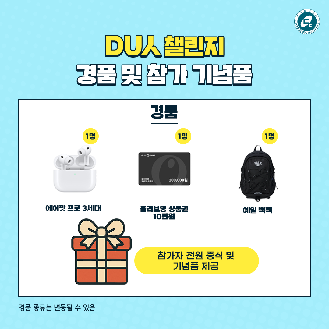 2026학년도 동서울대학교 수시 1차, 2차 지원자 대상, 동서울대학교 DU人 챌린지 참여자를 모집합니다!